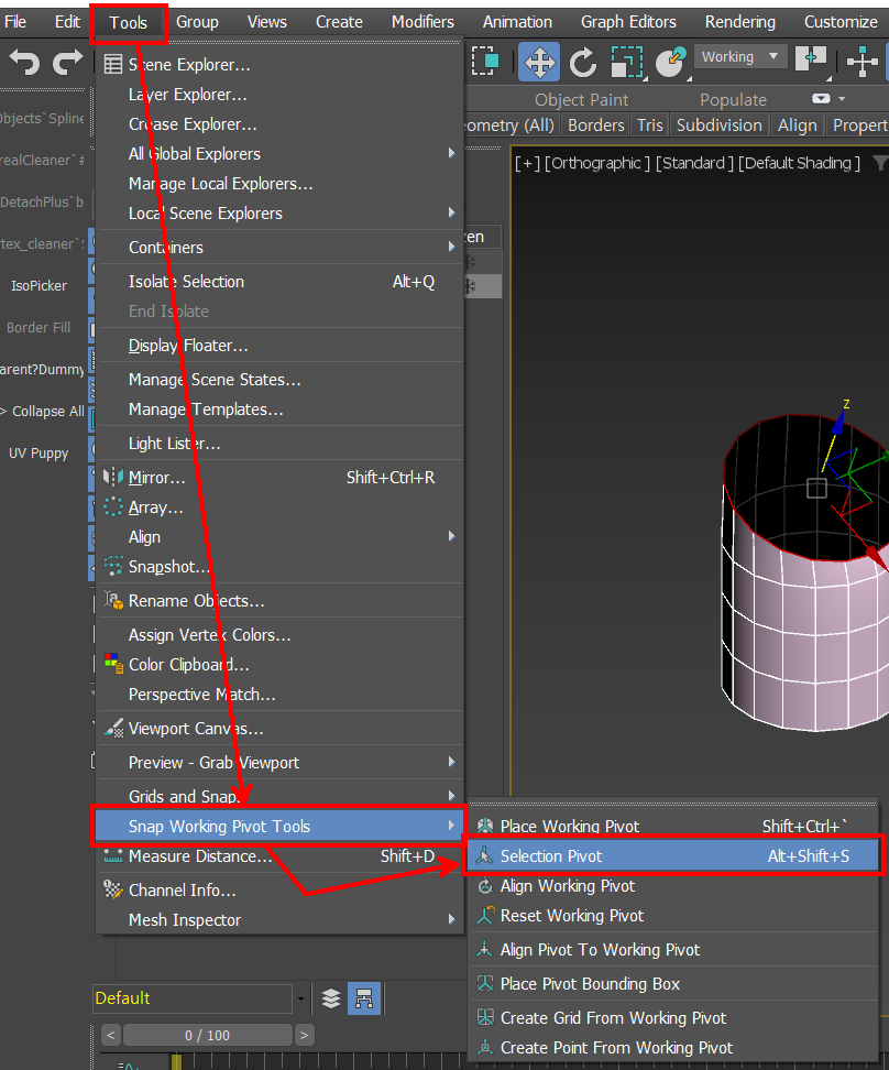- Working Pivot을 활성화하면 오브젝트의 기존 피벗과는 별개로 임의의 위치에 새 기준점을 둘 수 있습니다.