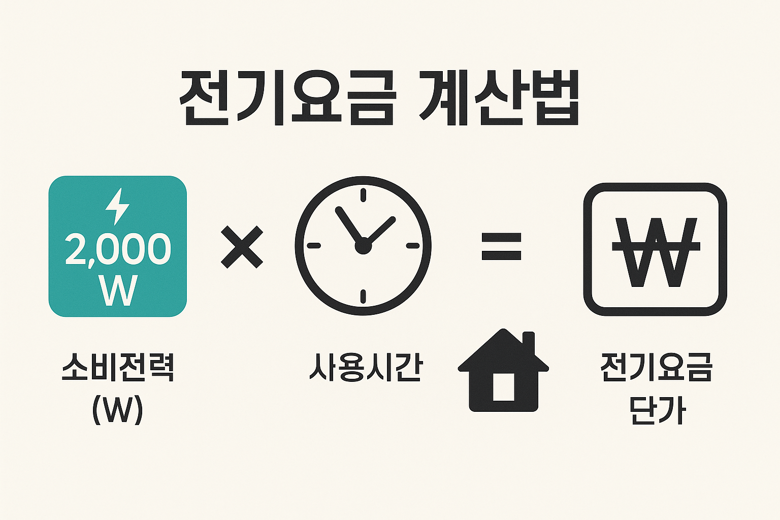 - 소비전력 × 전기요금 단가 = 실제 요금