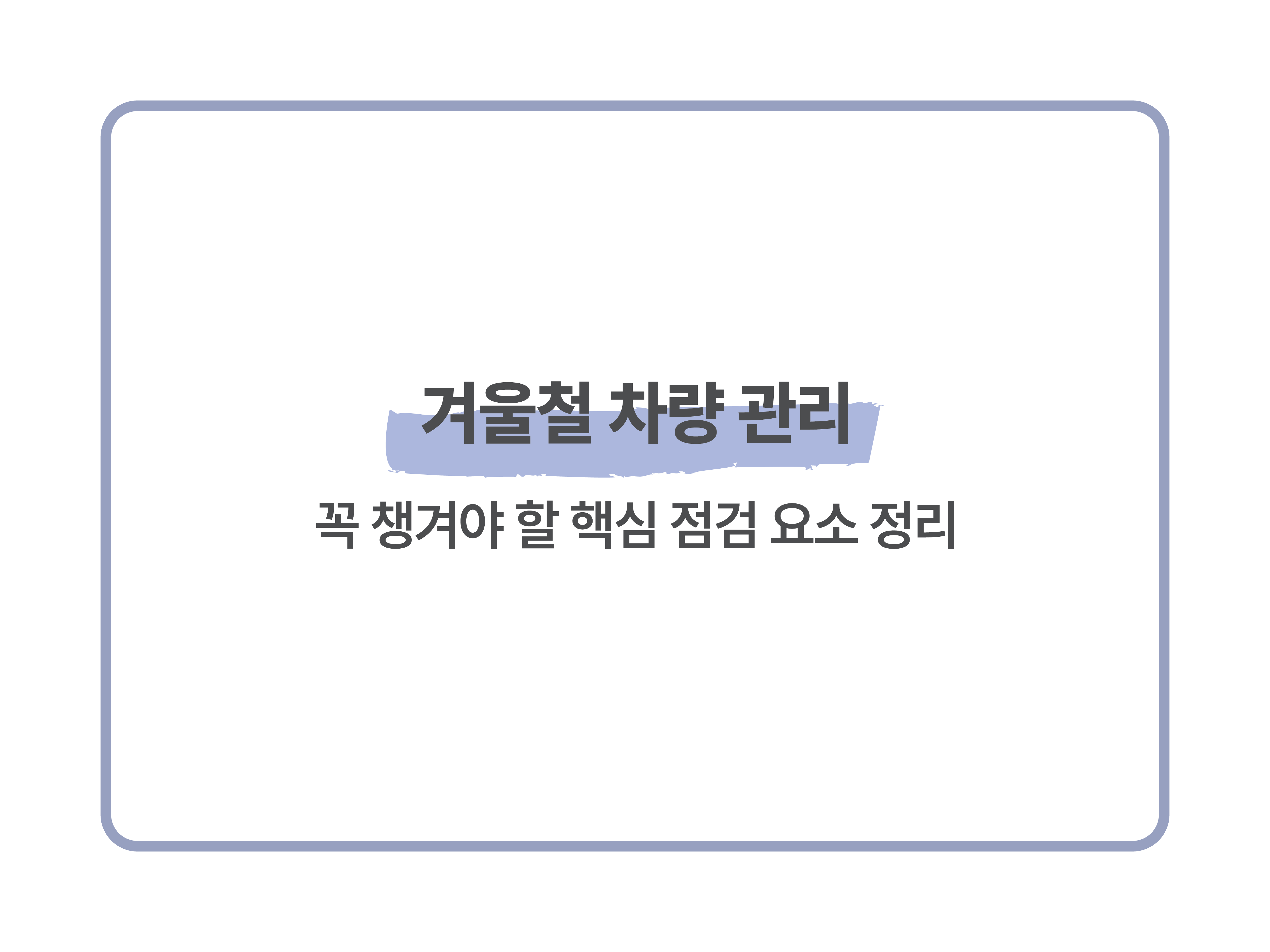겨울철 차량 관리는 어렵지 않지만, 작은 부분을 놓치면 방전·부식·시야 확보 문제처럼 불편함이 크게 돌아올 수 있습니다.