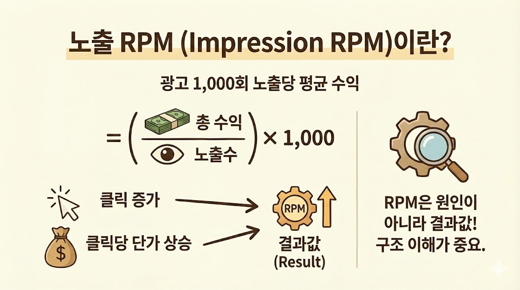 노출 RPM은 광고 1,000회 노출당 평균 수익을 의미합니다.