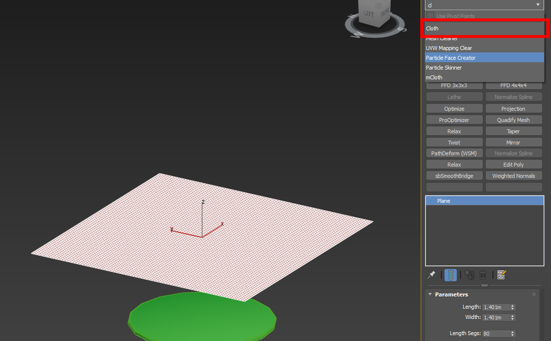 식탁보 역할을 하는 Plane에 Cloth Modifier를 적용합니다.