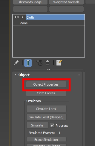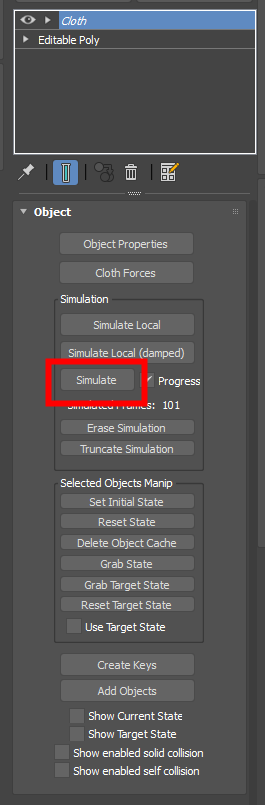 Simulate 버튼을 눌러 천이 자연스럽게 떨어지는지 확인합니다.