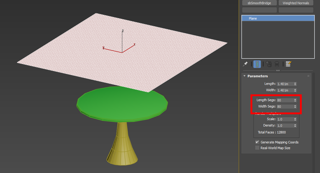 식탁보 Plane은 충분한 세그먼트가 필요합니다.