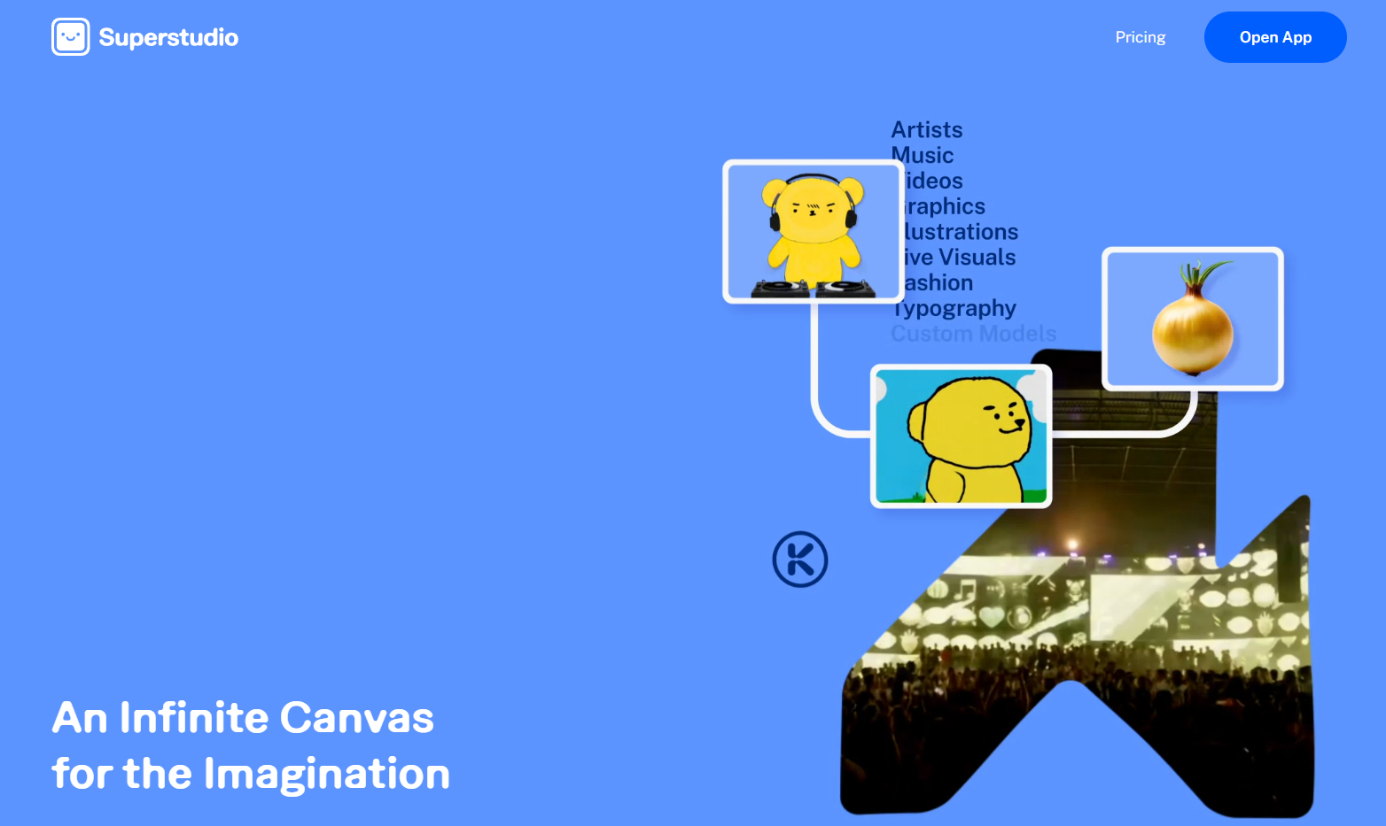 A playground for accelerating imagination. Superstudio brings together creative AI tools, image, and video models on an infinite canvas.