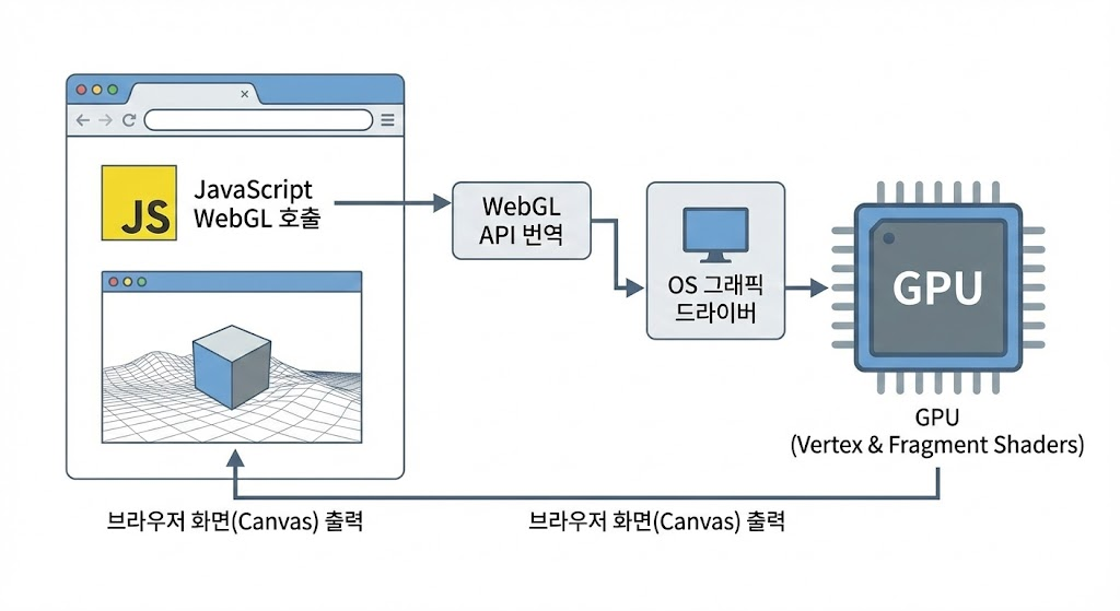 쉽게 말해, 웹페이지 안에서 고성능 3D 그래픽을 실시간으로 표현할 수 있게 해주는 핵심 기술이라고 보시면 됩니다.