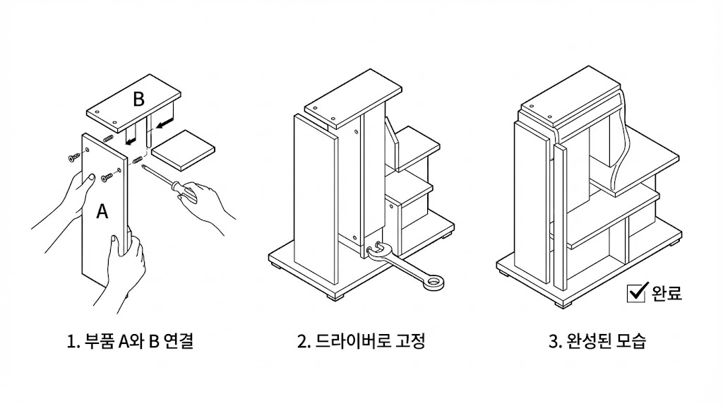 버튼, 레버, 방향, 조립 순서처럼 중요한 정보만 강조할 수 있어 사용자의 이해 속도가 훨씬 빨라집니다.