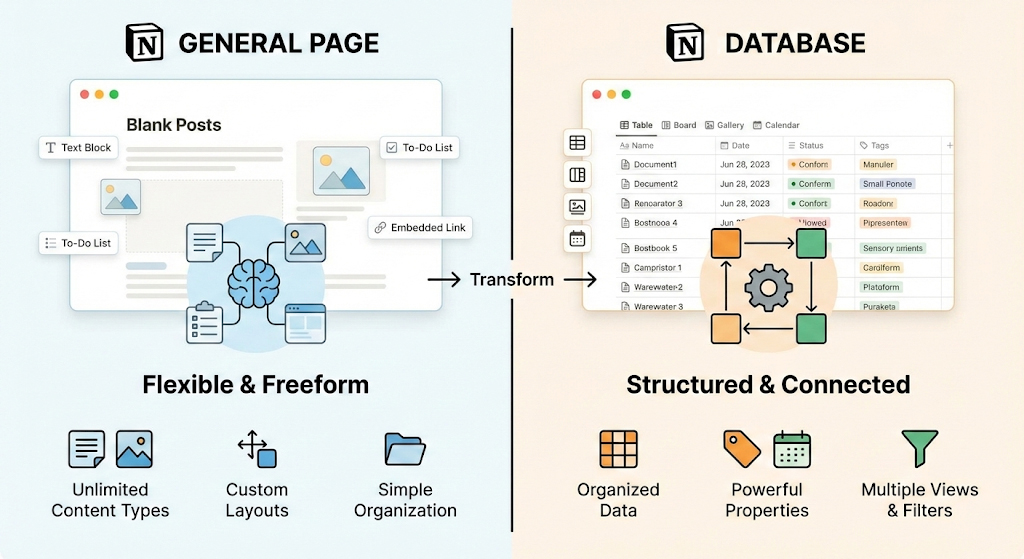 일반 페이지와 데이터베이스의 차이