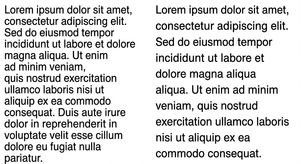 한 줄에 너무 많은 글자가 들어가거나, 반대로 지나치게 짧은 줄이 반복되면 읽는 흐름이 끊깁니다.