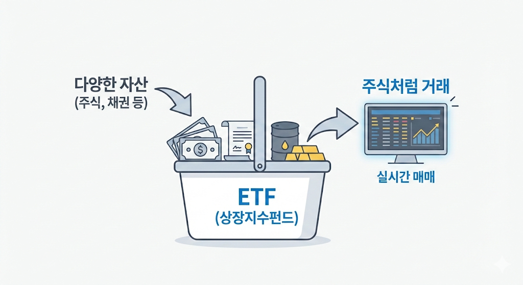 ETF는 펀드의 분산 투자 장점과 주식의 편리한 거래 방식을 결합한 금융상품입니다.