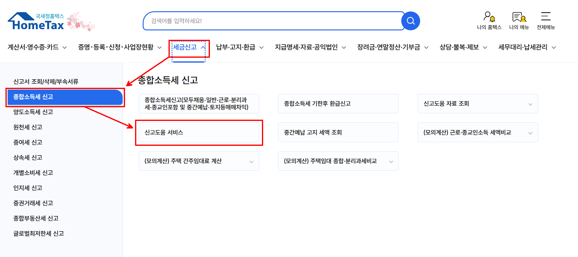 신고/납부 → 세금신고 → 종합소득세 클릭