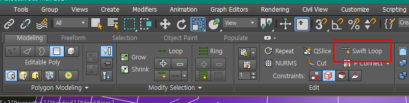 Edit Poly나 Editable Poly 상태에서 Swift Loop를 사용할 수 있습니다.