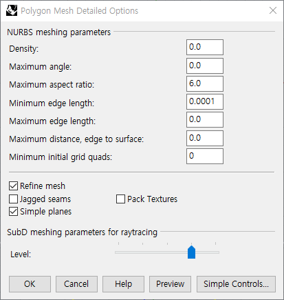 Simple Controls : 다각형 메시 옵션 대화 상자를 여십시오.