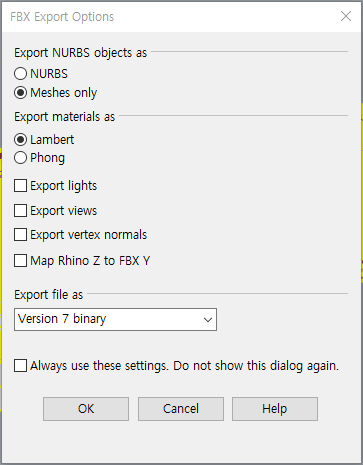 Map Rhino Z to FBX Y (라이노의 Z축을 FBX의 Y축으로 변경)