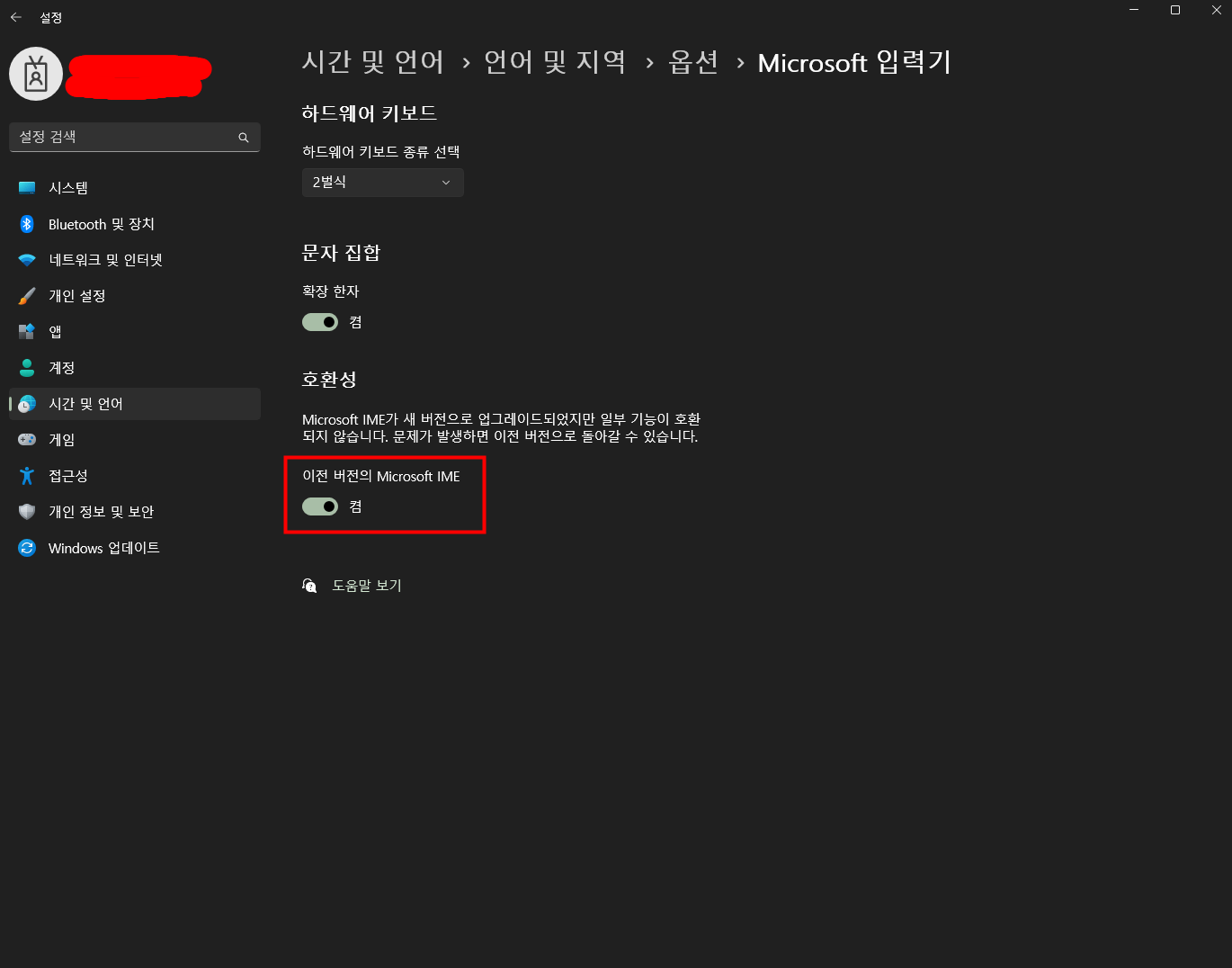윈도우11 Microsoft IME가 다른 프로그램들과의 호환성에 문제가 있나보네요.