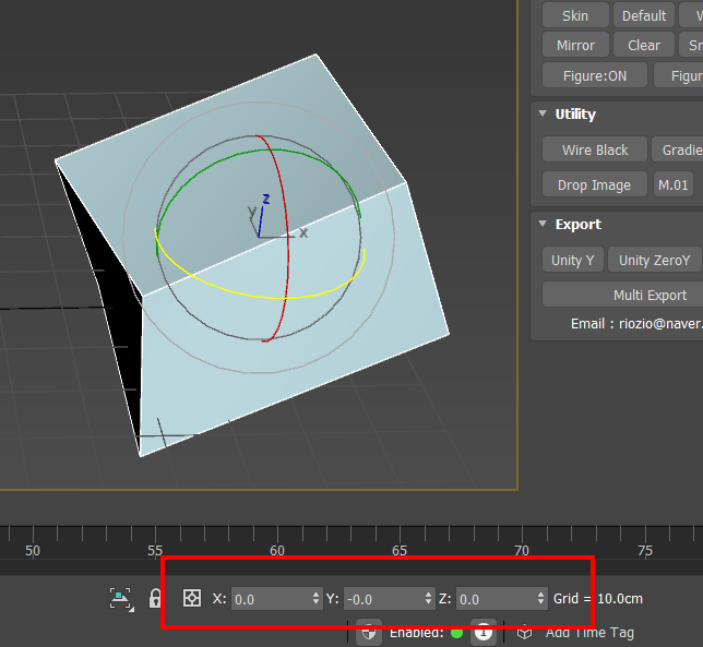 위 이미지는 제가 임의로 크기, 위치, 회전, 축 위치를 변경한 오브젝트 입니다. X, Y, Z 값들이 모두 수정된걸 볼 수 있습니다.