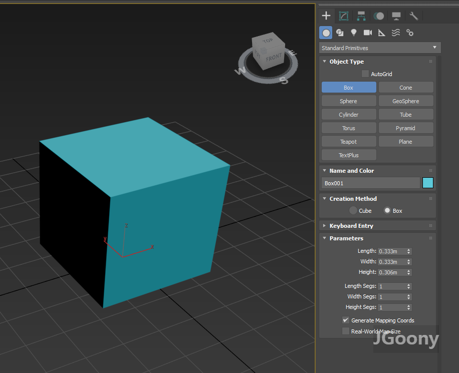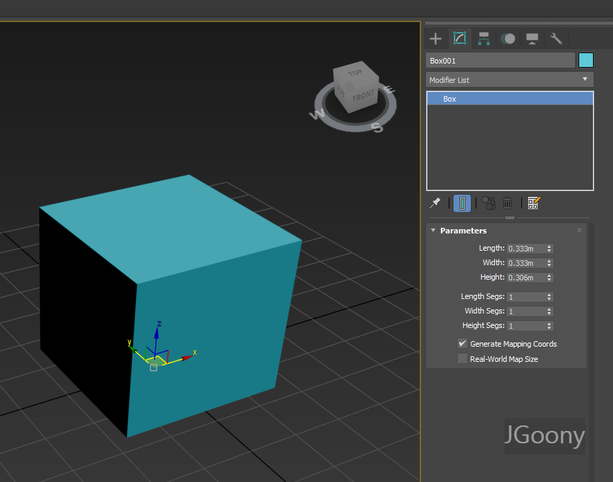 뷰포트상에 박스를 만들고 다른 모드로 변경하거나 다른 부분을 클릭하지 않으면 위 사진과 같이 Parameters 수치를 조정할 수 있습니다. 또는 상단 Modify 창으로 가면 동일한 수정 가능한 상태 창으로 가게 됩니다.