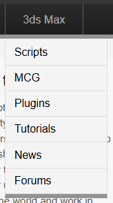 ScriptSpot의 상단 3ds Max 메뉴에는 다음 항목이 있습니다.