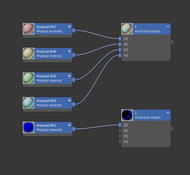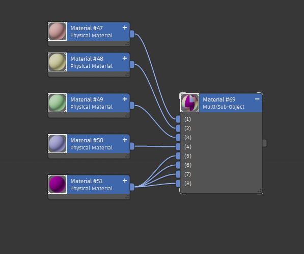 그리고 두 개의 오브젝트가 가지고 있는 각각의 Multi/Sub-Object ID가 쭉 나열되고, 파란색 오브젝트의 ID가 5~8번으로 붙었습니다.