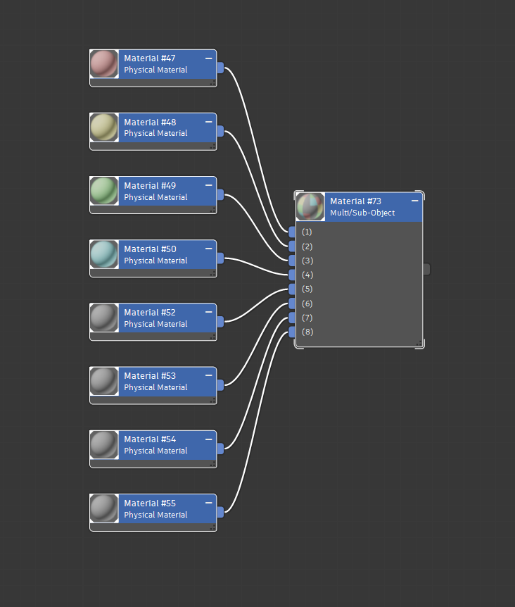 이번에는 Material ID 쪽을 기준으로 머티리얼을 재배치하는 방식입니다. 즉, “ID를 기준으로 재질을 맞춘다”는 의미입니다.