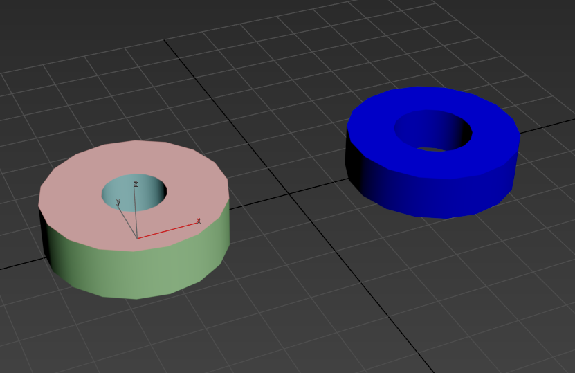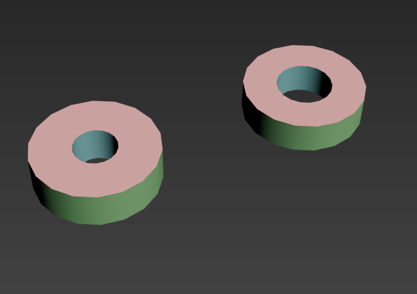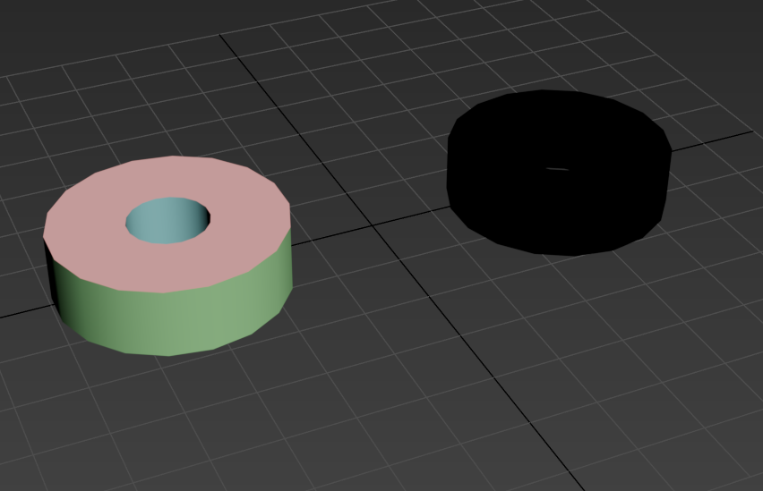 아래 이미지처럼 우측 오브젝트에 Multi/Sub-Object만 적용되고 ID에 아무 재질도 적용되지 않은 경우에 Attach를 하게 되면 ID는 ID가 변경되면서 5~8번으로 병합되지만 오른쪽 튜브 오브젝트에 1~4번까지만 재질이 들어가 있기 때문에 기본 재질로 들어가면서