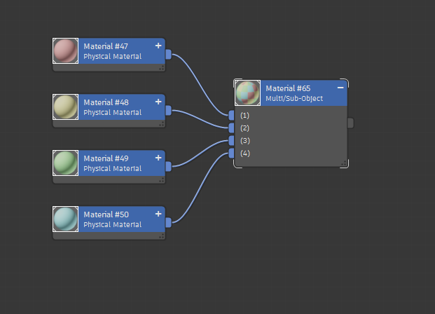 각 오브젝트에 서로 다른 Multi/Sub-Object가 적용되어있다 하더라고 Attach 하면서 재질을 기준으로 각 ID가 자동으로 재정렬 되면서 재질이 적용됩니다.