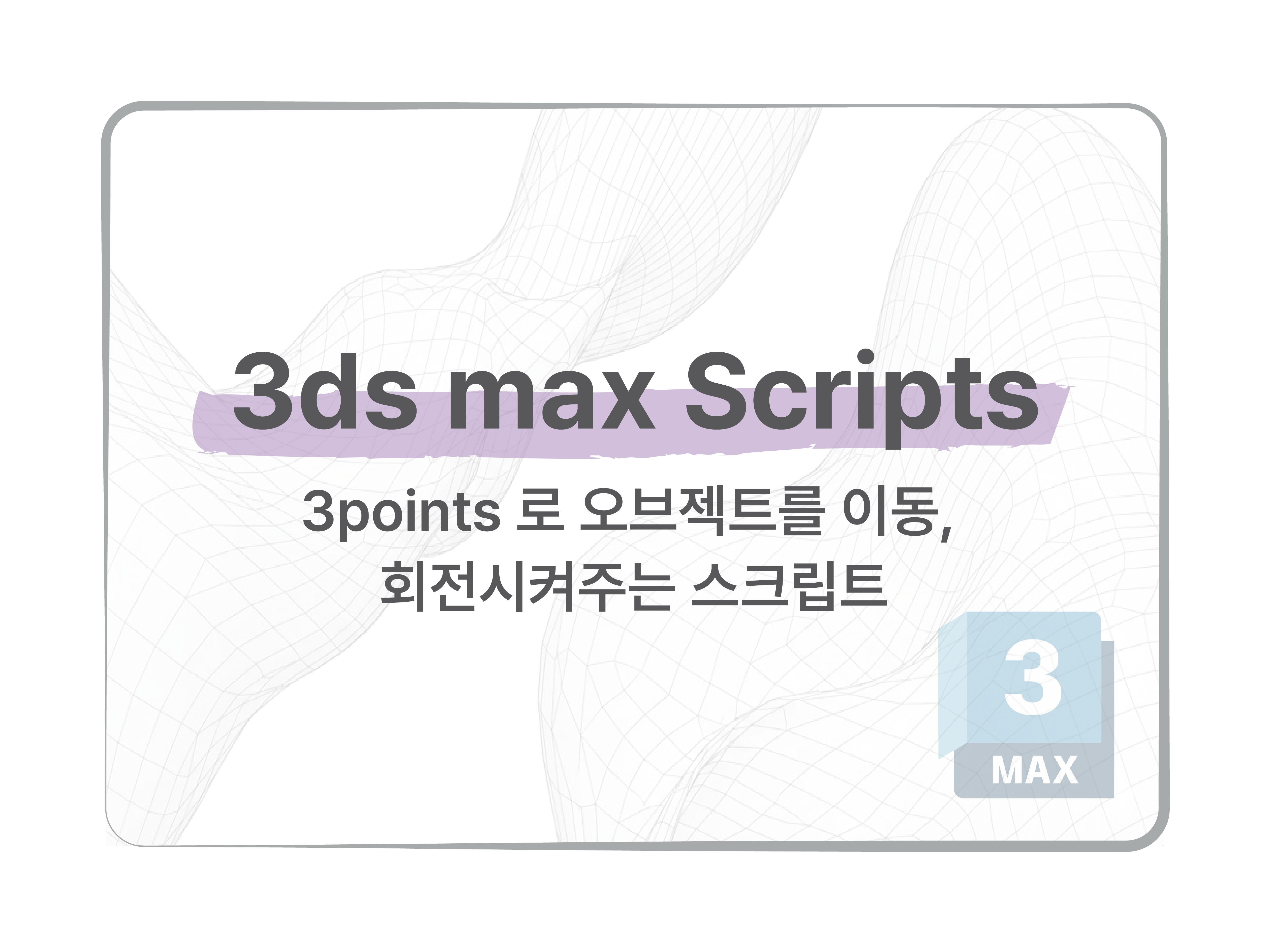 MAXScript 3ds Max 배치 자동화 스크립트 배포3ds Max에서 3포인트로 오브젝트를 정확히 배치·회전하는 스크립트모델링 작업 중 "이 면에 딱 맞춰서 붙이고 싶은데 각도를 어떻게 맞추지?"라는 고민, 자주 있으시죠?소스 3포인트와 목적지 3포인트, 총 6번의 클릭만으로 오브젝트를 원하는 위치와 각도에 완벽하게 정렬해 주는 MAXScript를 제작해 배포합니다.이 스크립트가 필요한 순간3ds Max의 기본 Align 기능은 축 정렬에는 편리하지만, 비스듬한 면이나 임의의 방향에 오브젝트를 맞출 때는 한계가 있습니다. 결국 수동으로 Rotate 값을 조정하거나, 더미 오브젝트를 만들어 맞추는 우회 방법을 쓰게 되죠.3Point Reference는 이 문제를 수학적으로 해결합니다. 소스 좌표계와 ..
