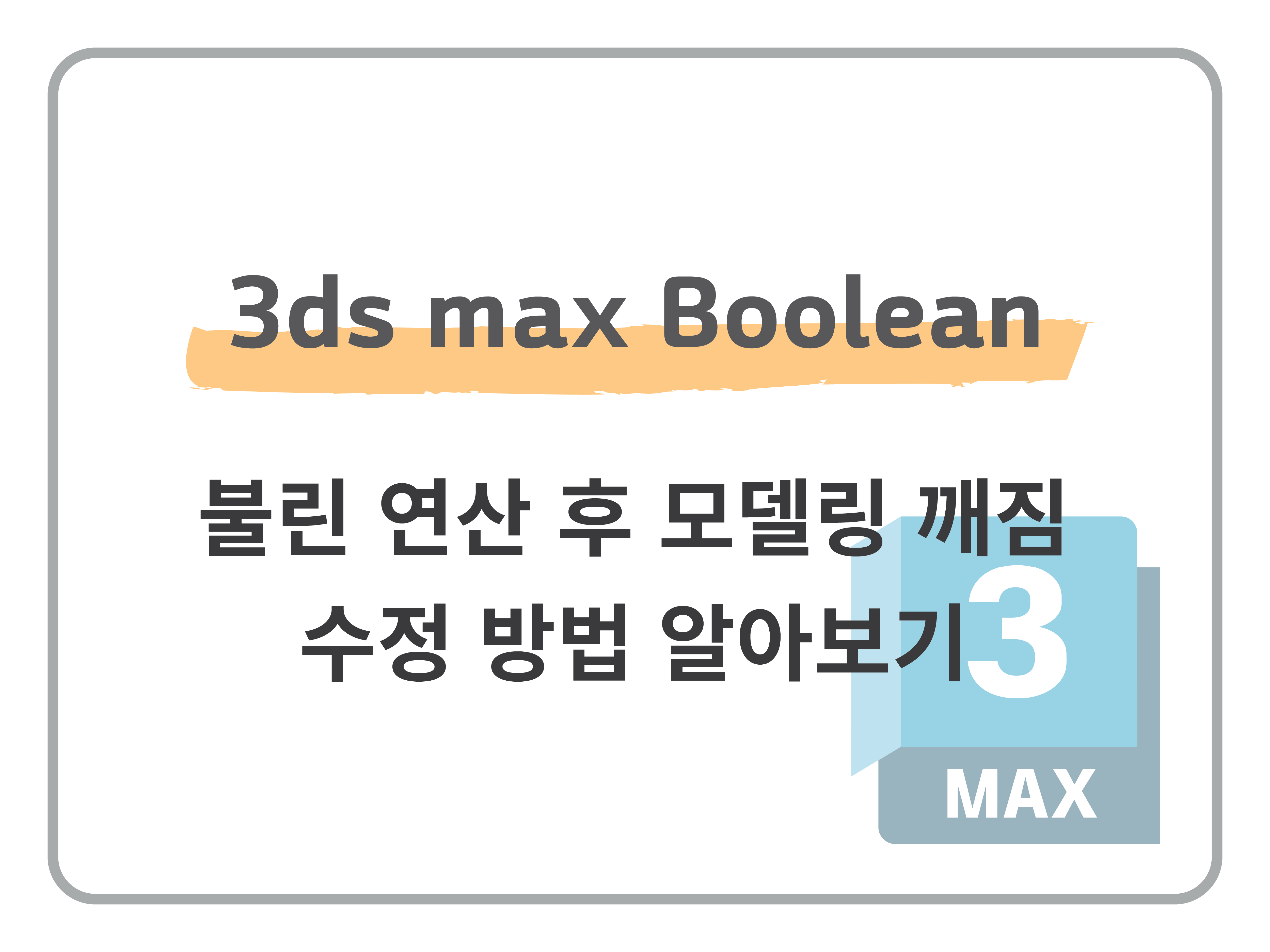 Boolean은 3ds max에서 복잡한 모델링 작업을 빠르게 처리할 수 있는 강력한 도구이지만, 잘못 사용하면 면이 찢어지거나 비정상적인 분할이 생겨 모델이 깨지는 문제가 발생합니다.3ds max에서 Boolean 후 모델이 왜 깨지는지, 그리고 어떻게 수정 및 예방할 수 있는지 정리 하겠습니다. 1. Boolean 후 모델이 깨지는 대표적인 증상 증상 설명 면이 사라지거나 구멍이 생김교차 영역의 버텍스가 올바르게 병합되지 않음표면이 울퉁불퉁하거나 어두워짐노멀 방향이 반전되거나 중복된 면이 존재Edit Poly 전환 시 메시가 뒤틀림Boolean 후 생성된 N-gon(5각 이상 다각형)이 원인Smooth가 이상하게 작동Edge Flow가 불규칙해 법선 방향이 깨짐이런 문제는 특히 복잡한 기하 구조, ..